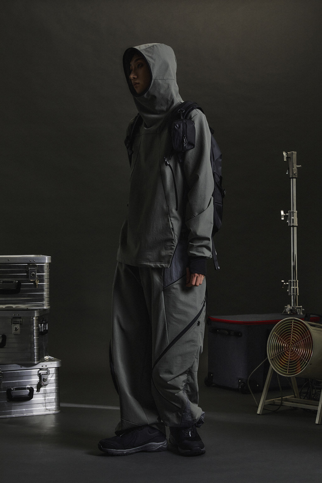 왼쪽 사이드 나일론 지퍼 디테일로 실루엣 조정.