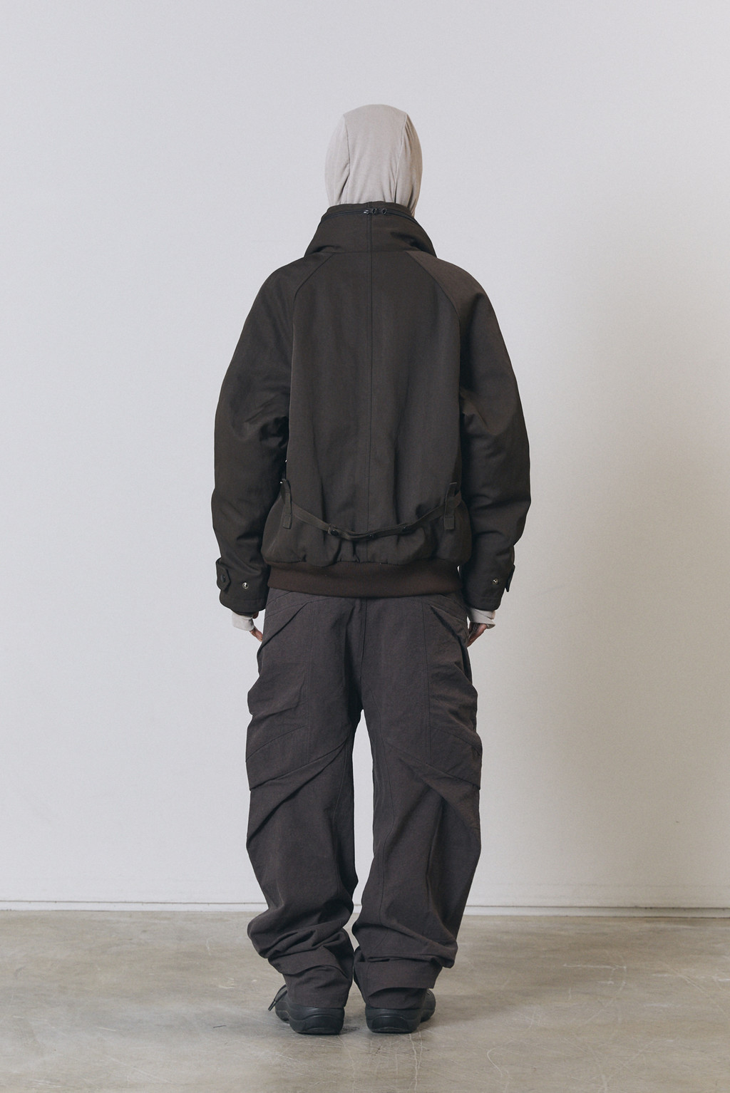 넥라인 내부 후드 수납 디테일, 스트링 내장.