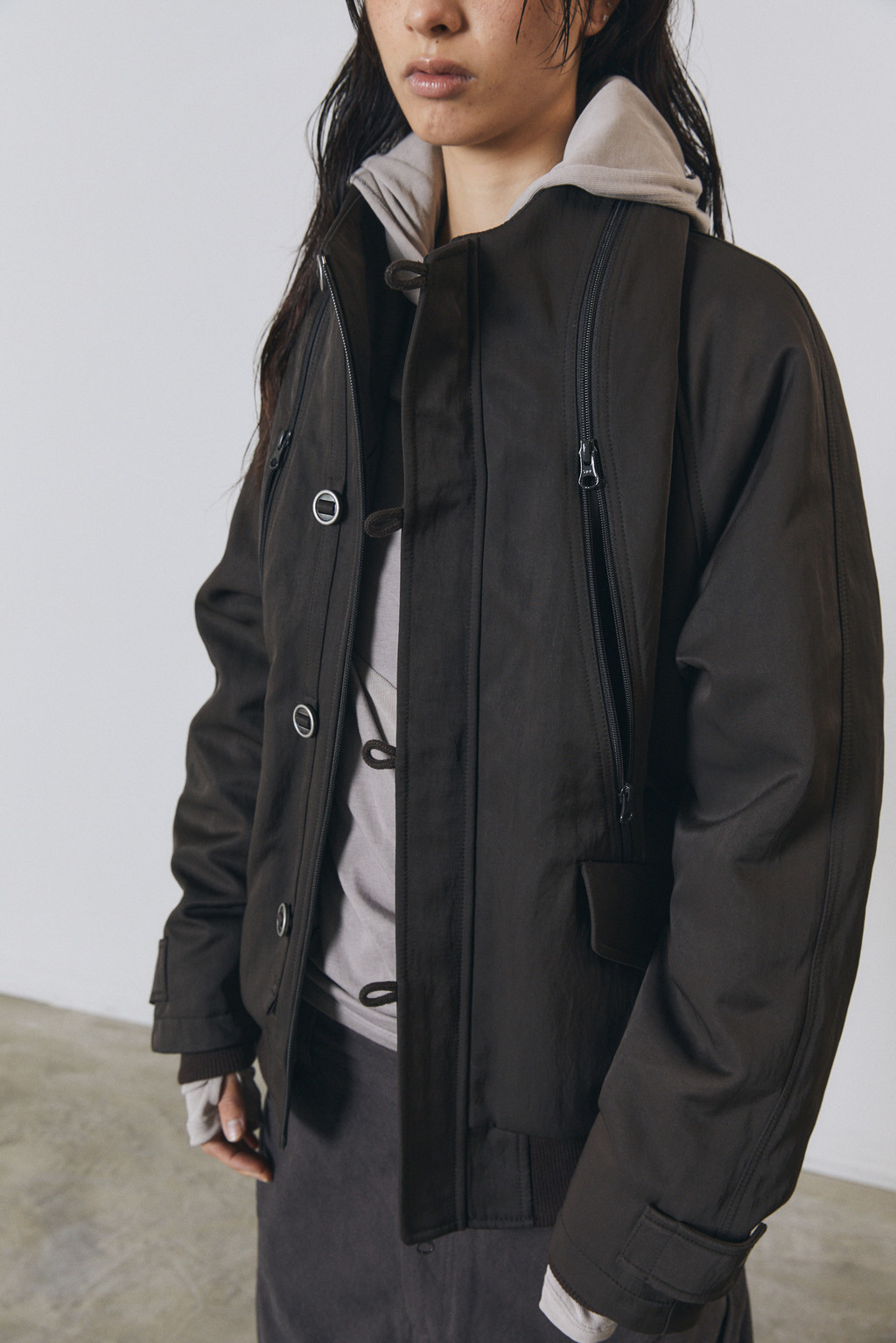 전면 YKK 투웨이 지퍼 마감.