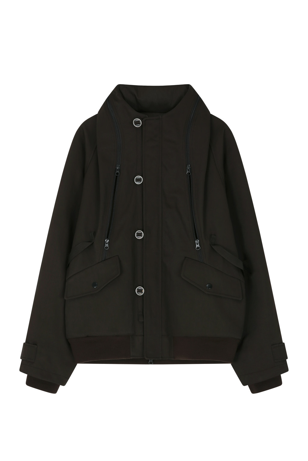 Double-layer ribbed cuffs and ribbed hem finish.