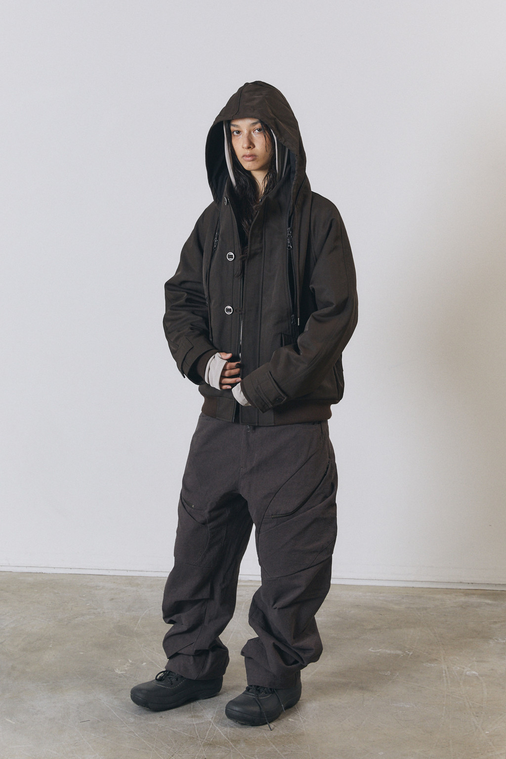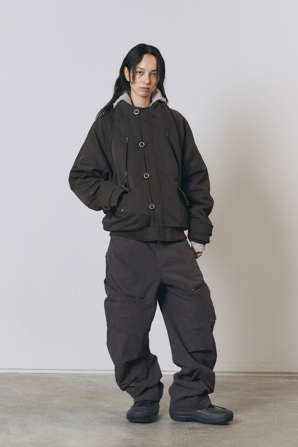 Female model is 169cm wearing SIZE 2(Dark Brown)
