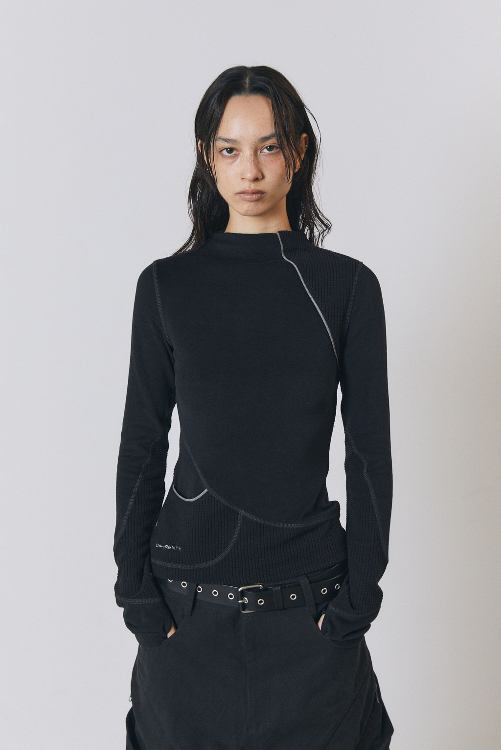 Women's stretchable high neck long sleeve top.